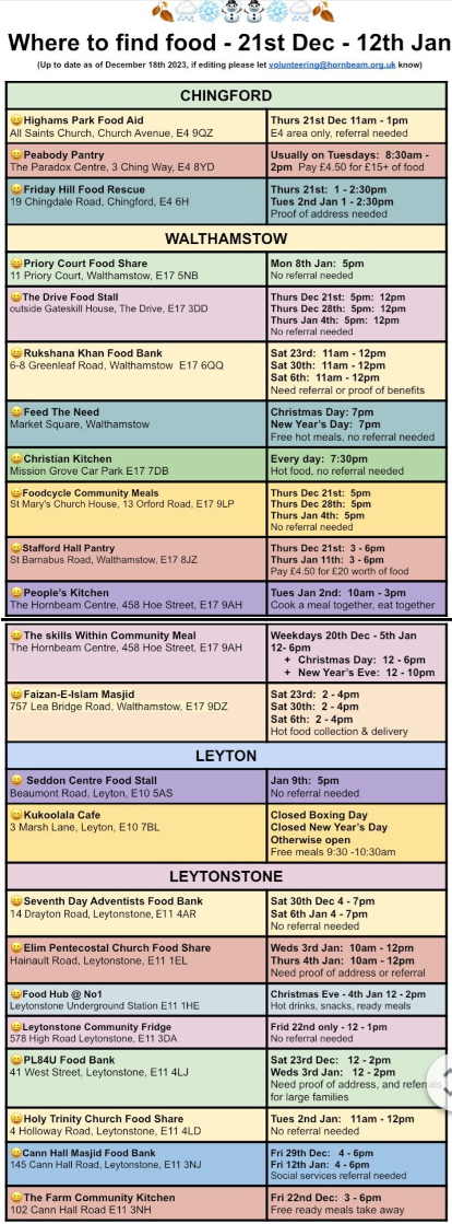 A list of places and organisations offering free food in London